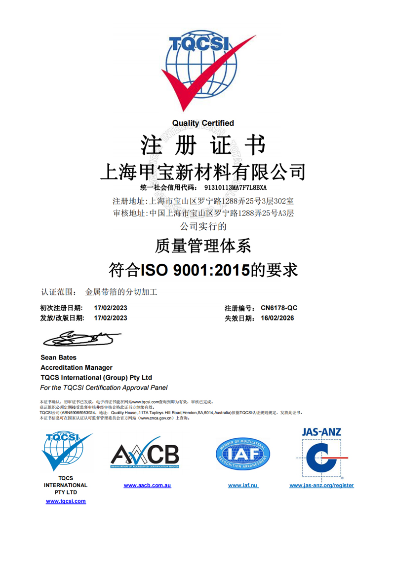甲寶金屬材料(上海)有限公司主要從事于高精密、高性能、超薄材料的研發(fā)、生產(chǎn)、銷售。致力于新技術、新材料的研發(fā)和推廣應用,產(chǎn)品廣泛應用于電子電器、電子屏蔽、航空航天、智能汽車、醫(yī)療器械、能源裝備、石墨烯、鋰電池、5G通訊等領域。